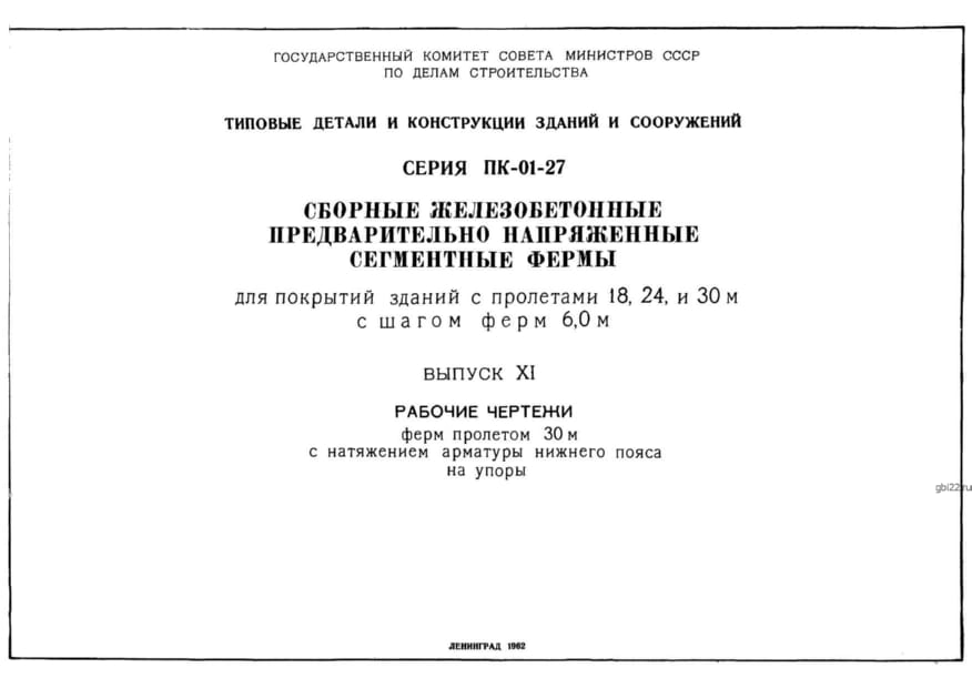 | Название стандарта | Сборные железобетонные предварительно напряженные сегментные фермы для покрытия зданий с пролетами 18, 24 и 30 м с шагом ферм 6,0 м. |