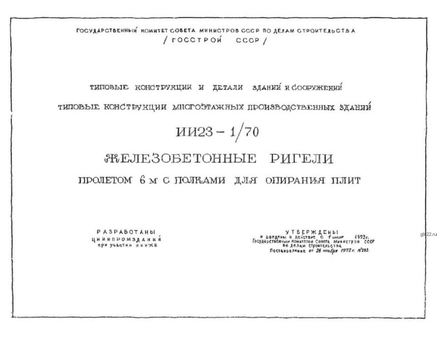 | Название стандарта | Железобетонные ригели пролетом 6 м с полками для опирания плит. |