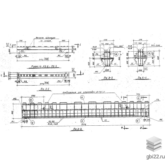Ригели Р 3-3 размеры: длина, мм.: 5170, ширина, мм.: 520, высота, мм.: 600, вес, кг.: 2610, марка бетона: М200. Изделия относятся к категории Ригели железобетонные-Ригели и изготавливаются по технической документации согласно серия ИИ 63