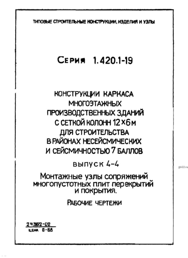 | Название стандарта | Конструкции каркаса многоэтажных производственных зданий с сеткой колонн 12х6 м для строительства в районах несейсмических и сейсмичностью 7 баллов. |