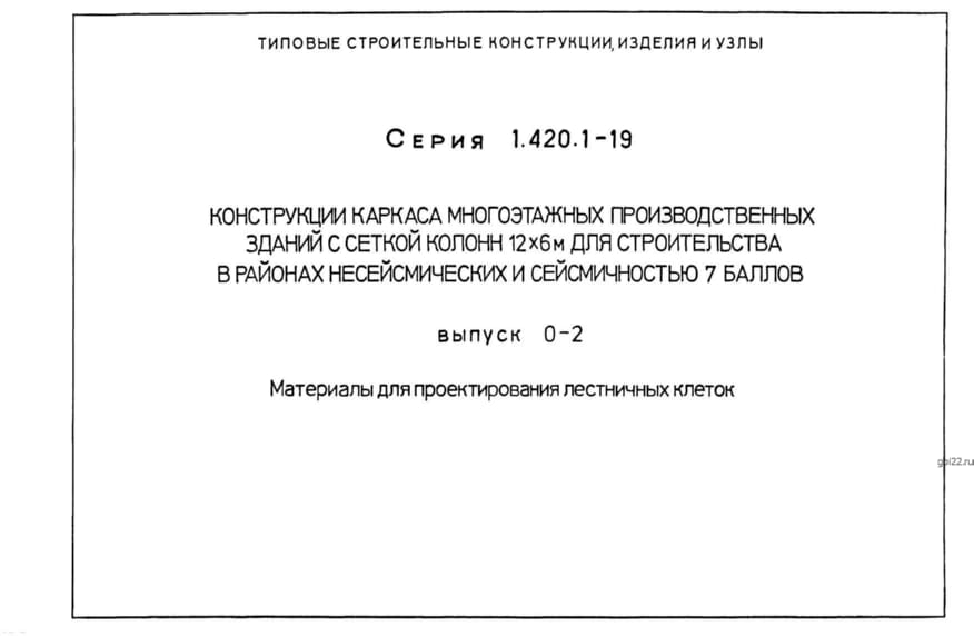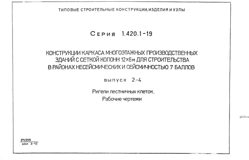 | Название стандарта | Конструкции каркаса многоэтажных производственных зданий с сеткой колонн 12х6 м для строительства в районах несейсмических и сейсмичностью 7 баллов. |