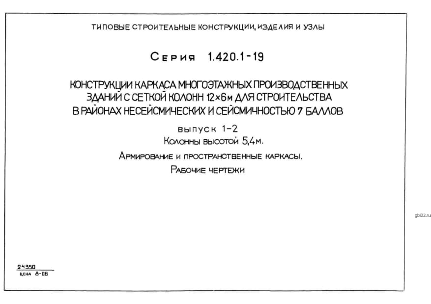 | Название стандарта | Конструкции каркаса многоэтажных производственных зданий с сеткой колонн 12х6 м для строительства в районах несейсмических и сейсмичностью 7 баллов. |