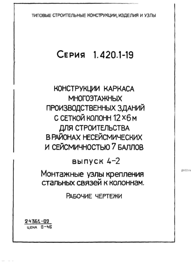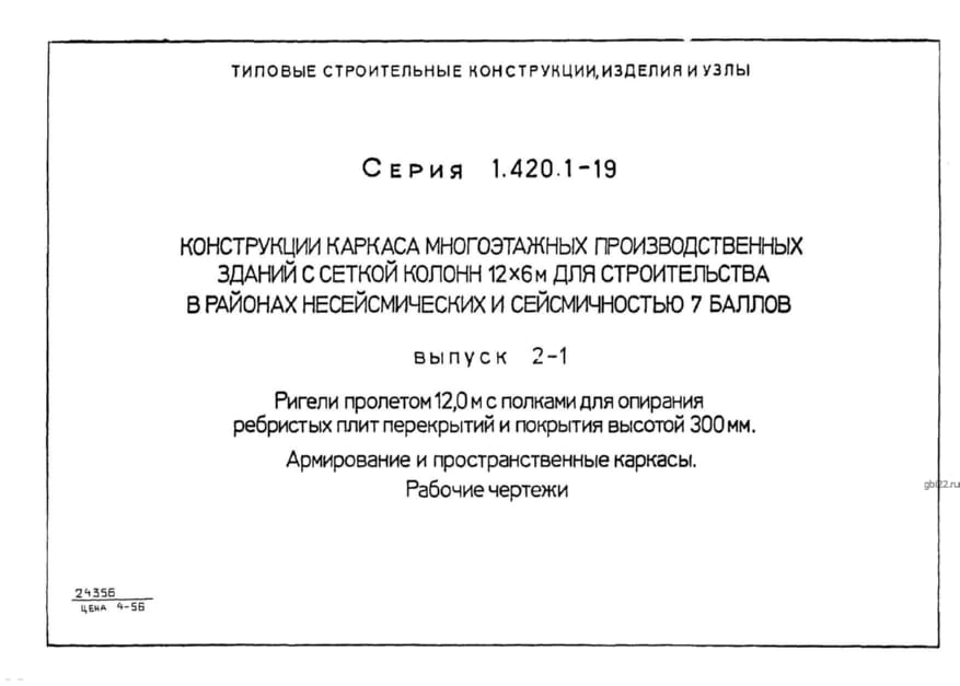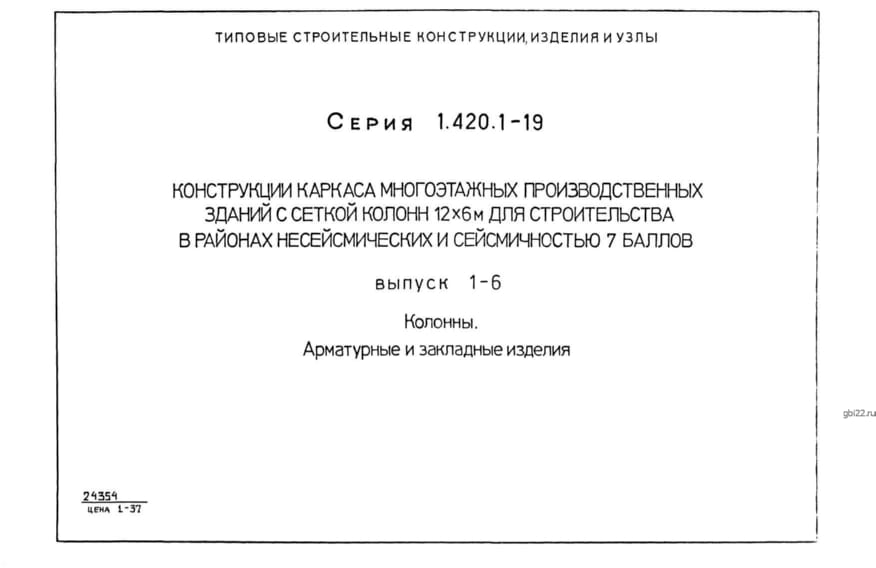 | Название стандарта | Конструкции каркаса многоэтажных производственных зданий с сеткой колонн 12х6 м для строительства в районах несейсмических и сейсмичностью 7 баллов. |