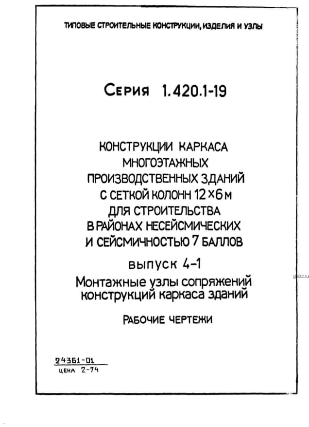 | Название стандарта | Конструкции каркаса многоэтажных производственных зданий с сеткой колонн 12х6 м для строительства в районах несейсмических и сейсмичностью 7 баллов. |