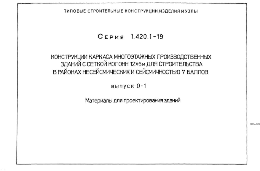 | Название стандарта | Конструкции каркаса многоэтажных производственных зданий с сеткой колонн 12х6 м для строительства в районах несейсмических и сейсмичностью 7 баллов. |