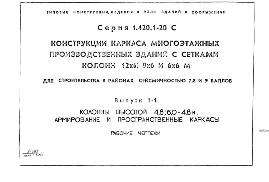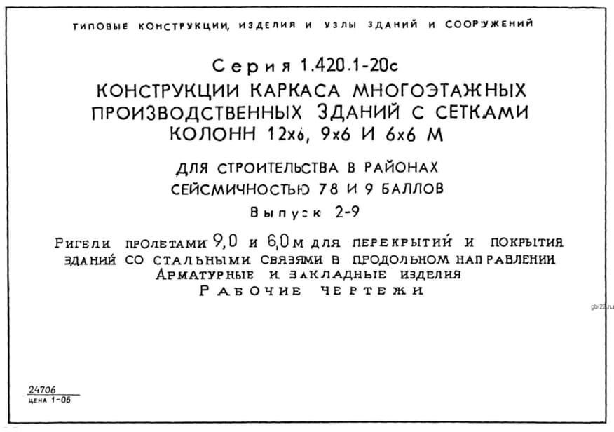 | Название стандарта | Конструкции каркаса многоэтажных производственных зданий с сетками колонн 12х6, 9х6 и 6х6 м для строительства в районах сейсмичностью 7, 8, 9 баллов. |
