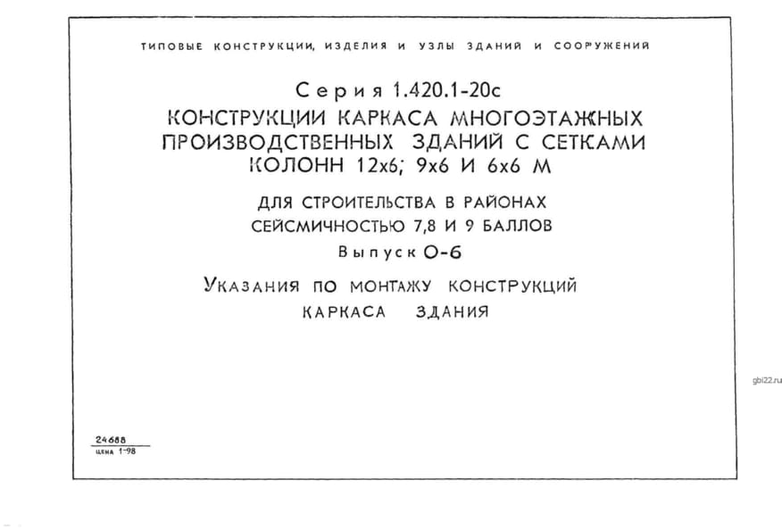 | Название стандарта | Конструкции каркаса многоэтажных производственных зданий с сетками колонн 12х6, 9х6 и 6х6 м для строительства в районах сейсмичностью 7, 8, 9 баллов. |
