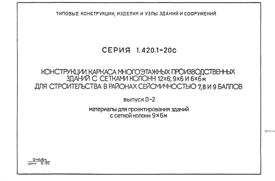 | Название стандарта | Конструкции каркаса многоэтажных производственных зданий с сетками колонн 12х6, 9х6 и 6х6 м для строительства в районах сейсмичностью 7, 8, 9 баллов. |