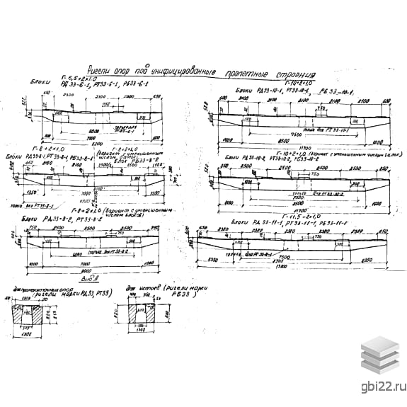 Унифицированные ригели используются при строительстве автодорожных мостов с пролетом до 33 метров, особенно в северных условиях. Они служат опорными элементами и устанавливаются на специальные блоки столбов, обеспечивая надежную и устойчивую опору мостового полотна с длительным сроком службы.