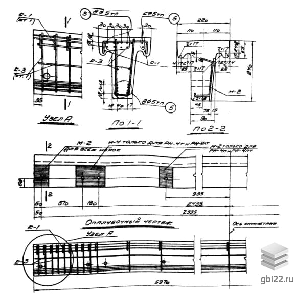 Сборные железобетонные предварительно напряженные прогоны и ригели для зданий с ограждающими конструкциями из асбестоцементных волнистых листов. Рабочие чертежи.
