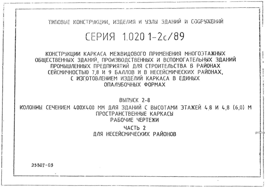 | Название стандарта | Конструкции каркаса межвидового применения многоэтажных общественных зданий, производственных и вспомогательных зданий промышленных предприятий для строительства в районах сейсмичностью 7, 8, 9 баллов и в несейсмических районах с изготовлением изделий кар |