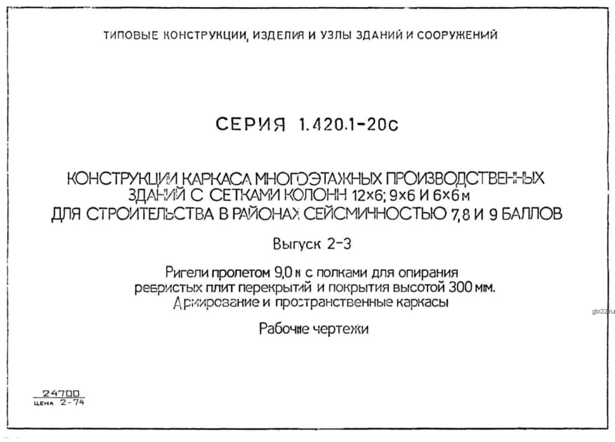 | Название стандарта | Конструкции каркаса многоэтажных производственных зданий с сетками колонн 12х6, 9х6 и 6х6 м для строительства в районах сейсмичностью 7, 8, 9 баллов. |