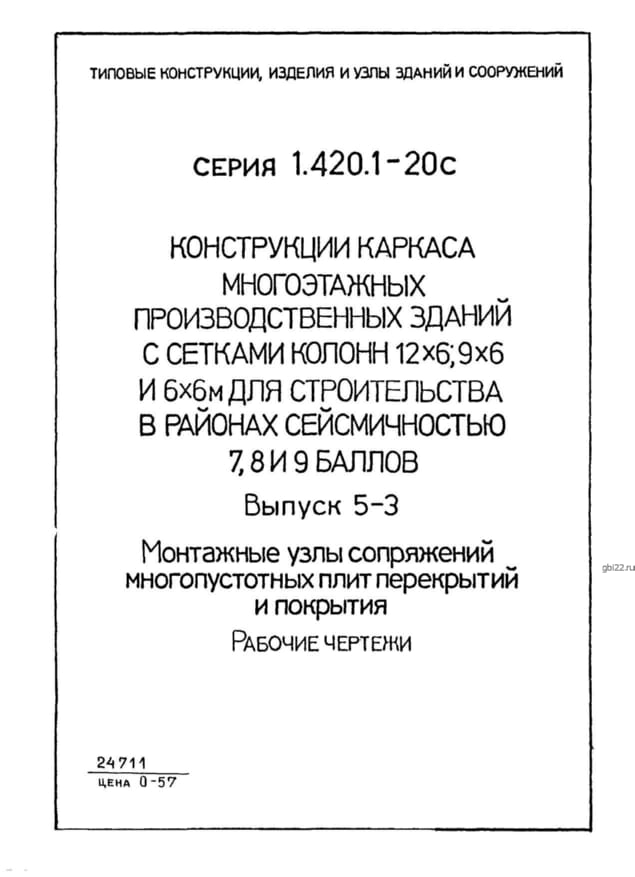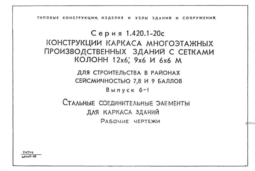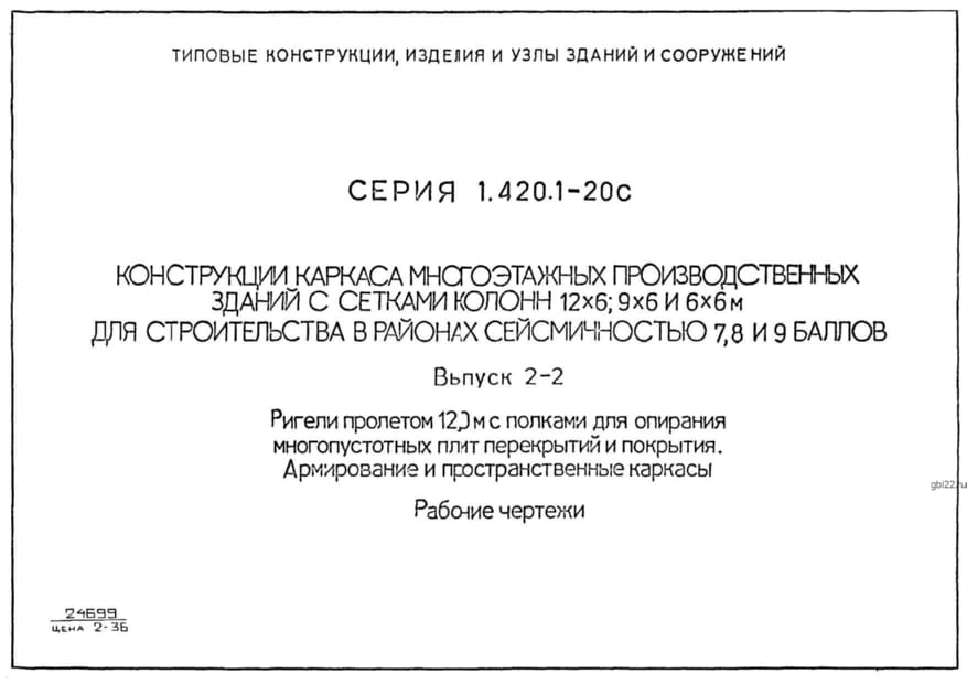 | Название стандарта | Конструкции каркаса многоэтажных производственных зданий с сетками колонн 12х6, 9х6 и 6х6 м для строительства в районах сейсмичностью 7, 8, 9 баллов. |