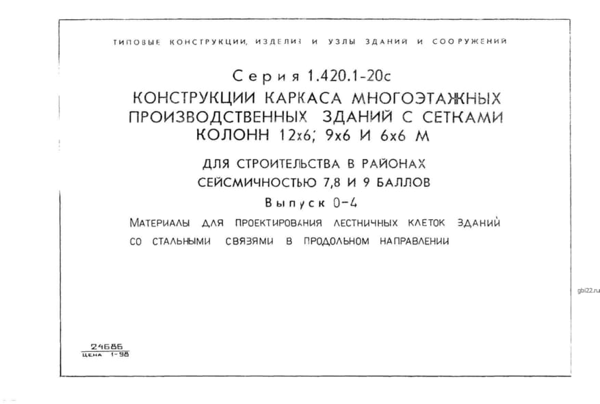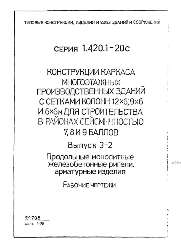 | Название стандарта | Конструкции каркаса многоэтажных производственных зданий с сетками колонн 12х6, 9х6 и 6х6 м для строительства в районах сейсмичностью 7, 8, 9 баллов. |