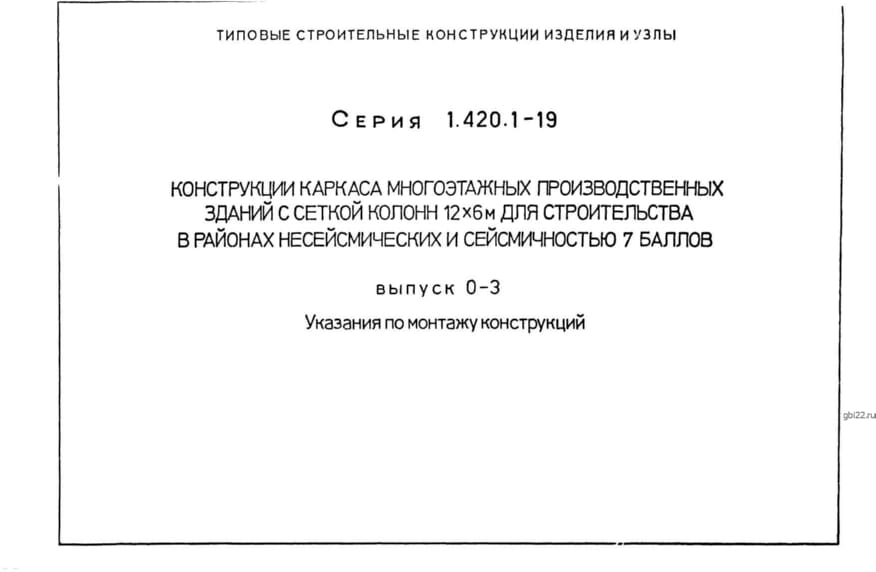 | Название стандарта | Конструкции каркаса многоэтажных производственных зданий с сеткой колонн 12х6 м для строительства в районах несейсмических и сейсмичностью 7 баллов. |
