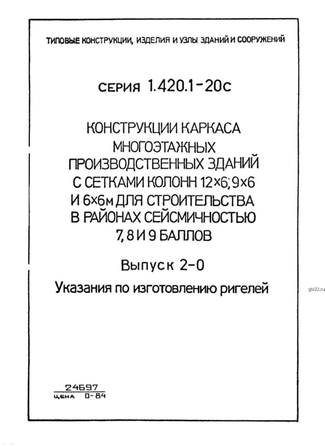 | Название стандарта | Конструкции каркаса многоэтажных производственных зданий с сетками колонн 12х6, 9х6 и 6х6 м для строительства в районах сейсмичностью 7, 8, 9 баллов. |