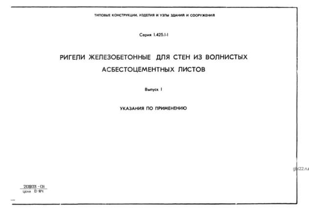| Название стандарта | Ригели железобетонные для стен из волнистых асбестоцементных листов. |