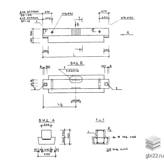 Изготавливается из бетона М300 с предварительно напряженной арматурой (Ат-V по ГОСТ 10884). Оснащается: