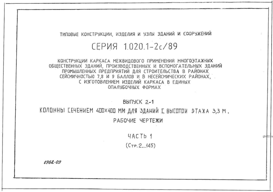 | Название стандарта | Конструкции каркаса межвидового применения многоэтажных общественных зданий, производственных и вспомогательных зданий промышленных предприятий для строительства в районах сейсмичностью 7, 8, 9 баллов и в несейсмических районах с изготовлением изделий кар |