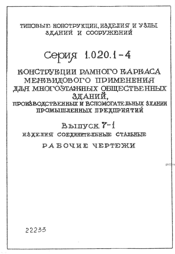 | Название стандарта | Конструкция рамного каркаса межвидового применения для многоэтажных общественных зданий, производственных и вспомогательных зданий промышленных предприятий. |