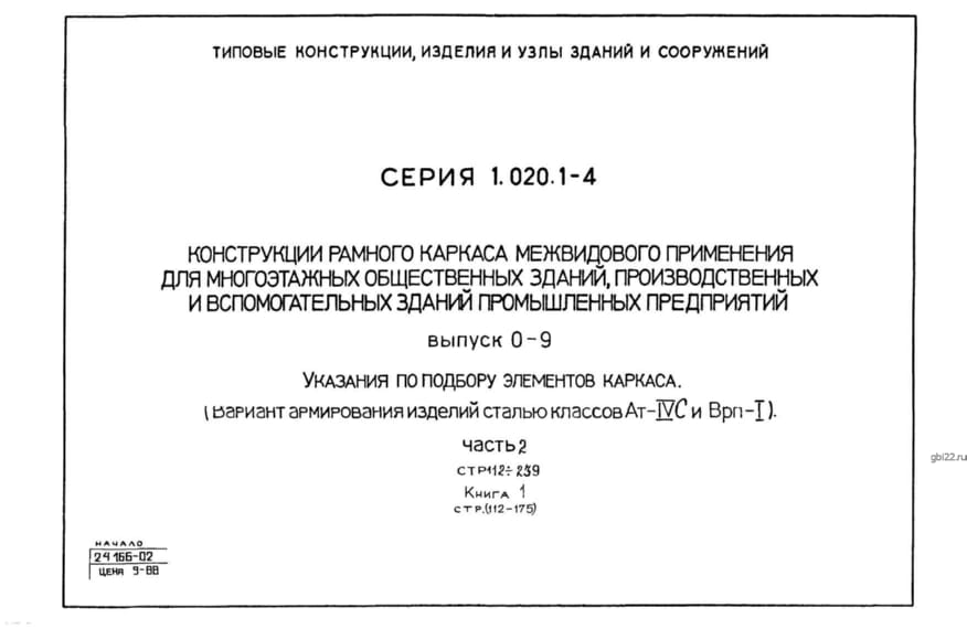 | Название стандарта | Конструкция рамного каркаса межвидового применения для многоэтажных общественных зданий, производственных и вспомогательных зданий промышленных предприятий. |