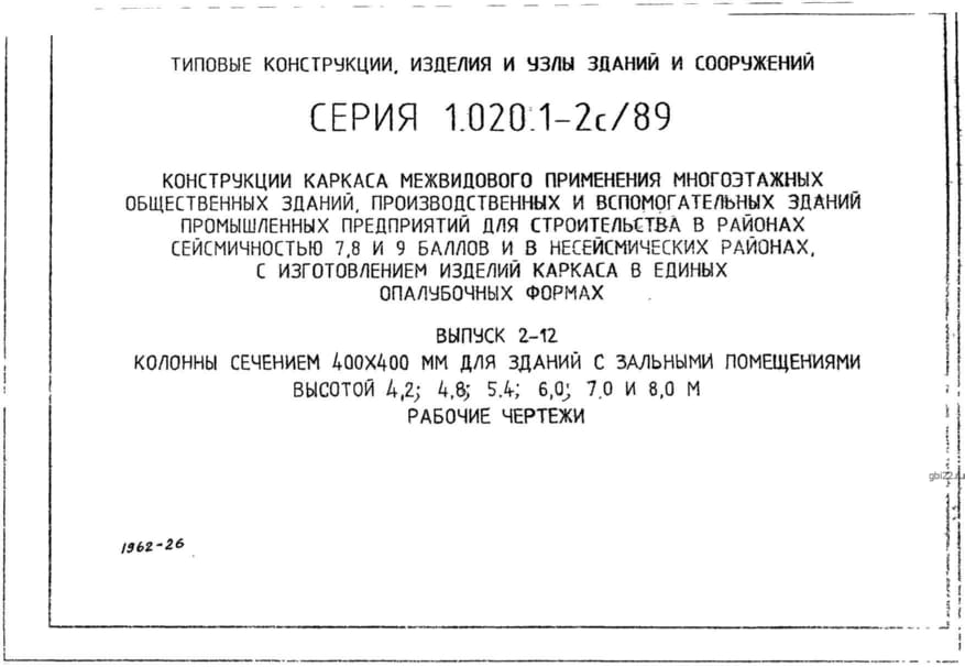| Название стандарта | Конструкции каркаса межвидового применения многоэтажных общественных зданий, производственных и вспомогательных зданий промышленных предприятий для строительства в районах сейсмичностью 7, 8, 9 баллов и в несейсмических районах с изготовлением изделий кар |