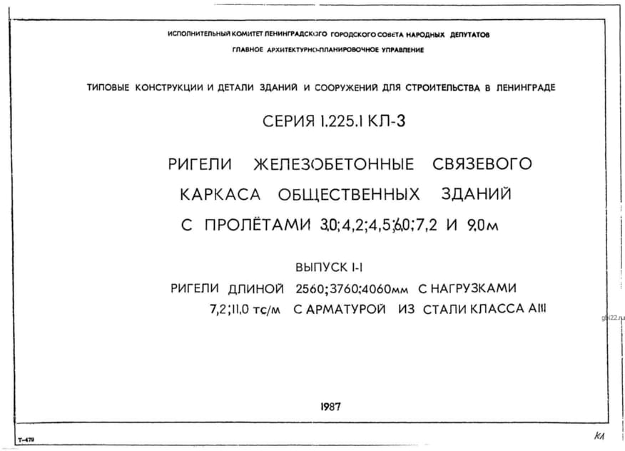 | Название стандарта | Ригели железобетонные связевого каркаса общественных зданий с пролетами 3,0; 4,2; 4,5; 6,0; 7,2 и 9,0 м. |