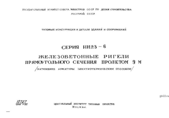 | Название стандарта | Железобетонные ригели прямоугольного сечения пролетом 9 м (натяжение арматуры электротермическим способом). |