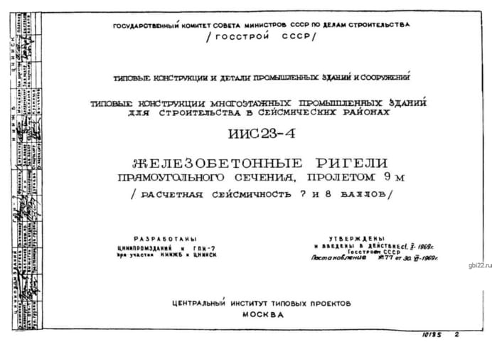 | Название стандарта | Железобетонные ригели прямоугольного сечения, пролетом 9 м (расчетная сейсмичность 7, 8 и 9 баллов). |