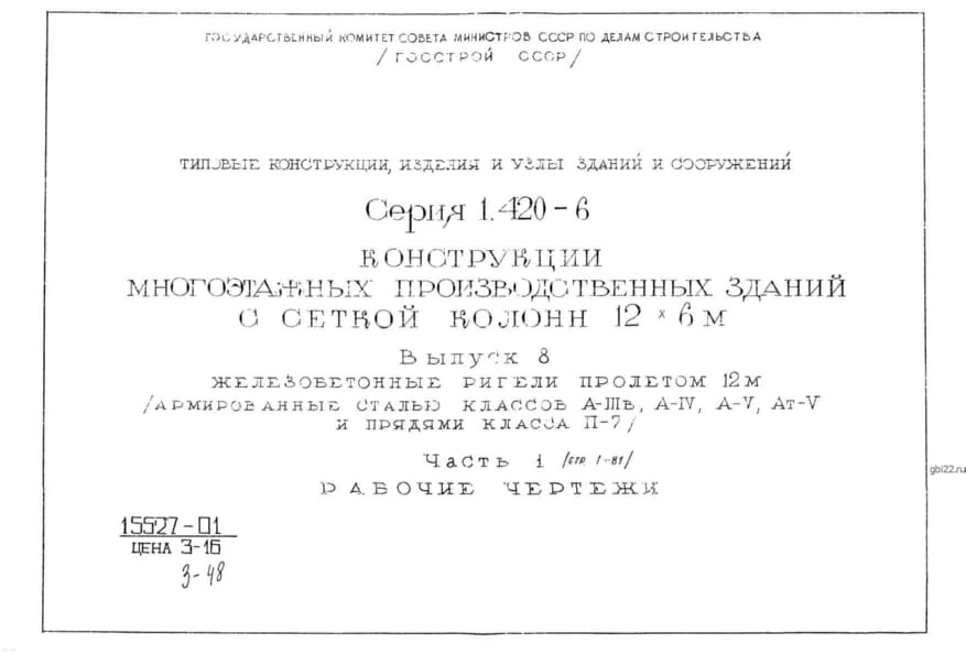 | Название стандарта | Конструкции многоэтажных производственных зданий с сеткой колонн 12х6 м. |