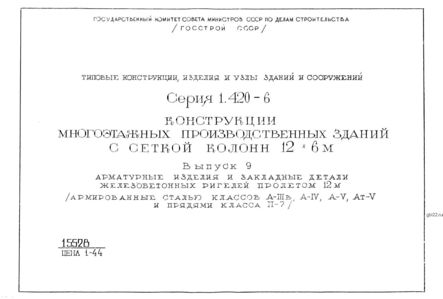 | Название стандарта | Конструкции многоэтажных производственных зданий с сеткой колонн 12х6 м. |