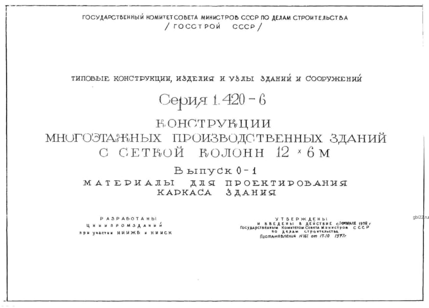 | Название стандарта | Конструкции многоэтажных производственных зданий с сеткой колонн 12х6 м. |