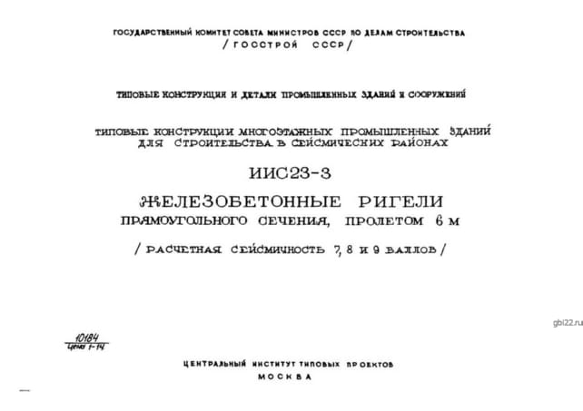 | Название стандарта | Железобетонные ригели прямоугольного сечения, пролетом 6 м (расчетная сейсмичность 7, 8 и 9 баллов). |
