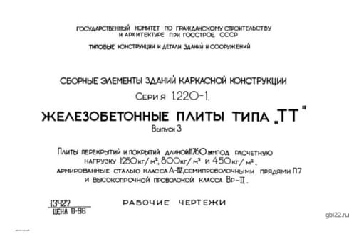 | Название стандарта | Сборные элементы зданий каркасной конструкции. Железобетонные плиты типа "ТТ". |