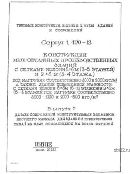 | Название стандарта | Конструкции многоэтажных производственных зданий с сетками колонн 6х6 м (3 - 5 этажей) и 9х6 м (3 - 4 этажа) под нагрузки соответственно 3000 и 2000 кгс/кв. м, а также зданий повышенной этажности с сетками колонн 6х6 м (6 - 10 этажей) и 9х6 м (5 - 8 этаже |