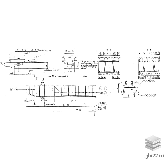Ригели РД 24-6-1 относятся к категории высокопрочных строительных материалов. Эти изделия представлены в виде прямоугольных конструкций с наклонными торцевыми гранями. В теле элементов имеются трапециевидные сквозные отверстия, предназначенные для установки стоек опор. Для упрощения погрузочно-разгрузочных работ и монтажа на ригелях предусмотрены специальные петли.