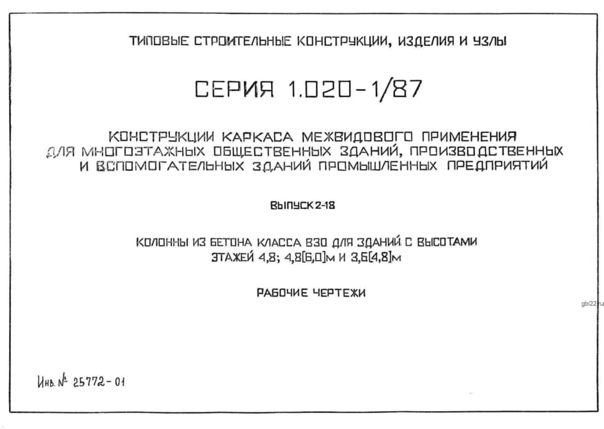 | Название стандарта | Конструкции каркаса межвидового применения для многоэтажных общественных зданий, производственных и вспомогательных зданий промышленных предприятий. |