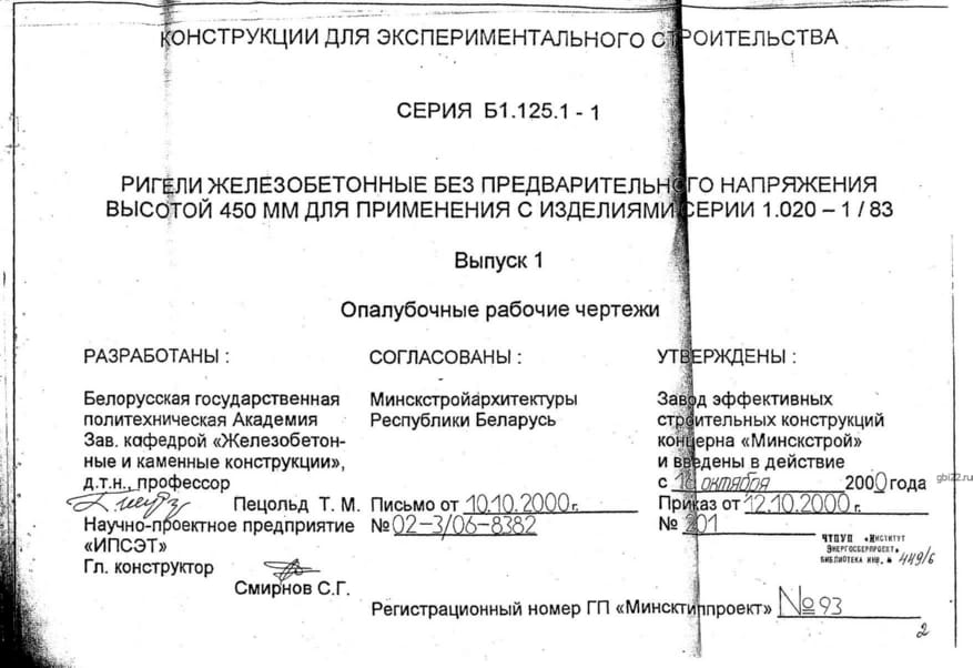 | Название стандарта | Ригели железобетонные без предварительного напряжения высотой 450 мм. для применения с изделиями серии 1.020-1/83. |