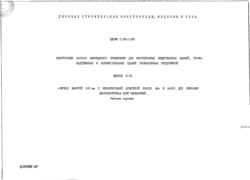 | Название стандарта | Конструкции каркаса межвидового применения для многоэтажных общественных зданий, производственных и вспомогательных зданий промышленных предприятий. |