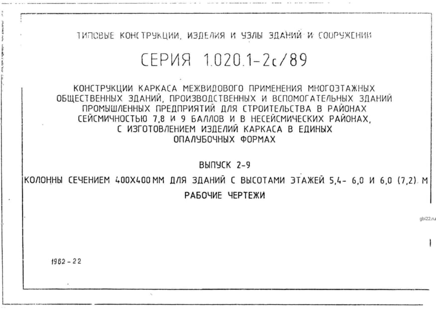 | Название стандарта | Конструкции каркаса межвидового применения многоэтажных общественных зданий, производственных и вспомогательных зданий промышленных предприятий для строительства в районах сейсмичностью 7, 8, 9 баллов и в несейсмических районах с изготовлением изделий кар |