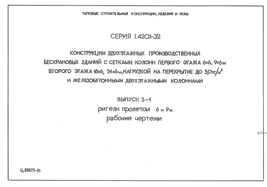 | Название стандарта | Конструкции двухэтажных производственных бескрановых зданий с сетками колонн первого этажа 6х6, 9х6 м второго этажа 18х6, 24х6 м, нагрузкой на перекрытие до 5,0 тс/м2 и железобетонными колоннами. |