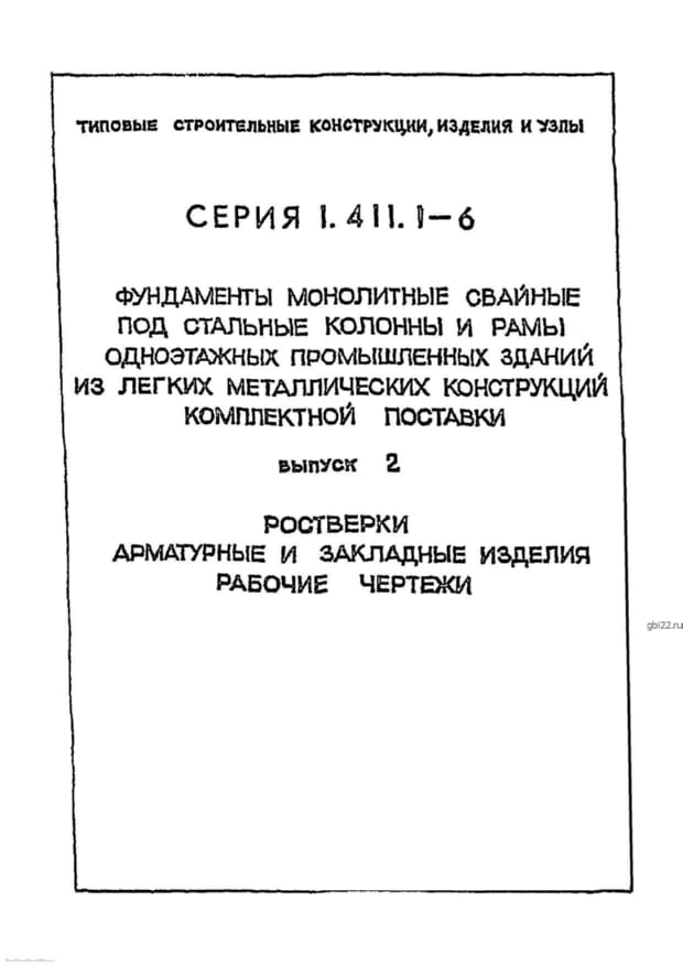 | Название стандарта | Фундаменты монолитные свайные под стальные колонны и рамы одноэтажных промышленных зданий из легких металлических конструкций комплектной поставки. |