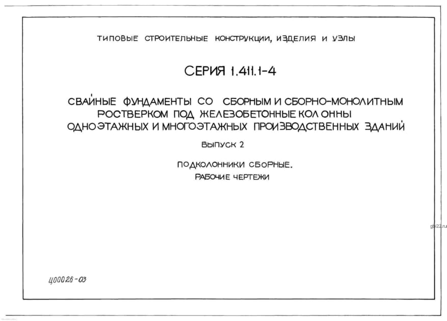 | Название стандарта | Свайные фундаменты со сборным и сборно-монолитным ростверком под железобетонные колонны одноэтажных и многоэтажных производственных зданий. |