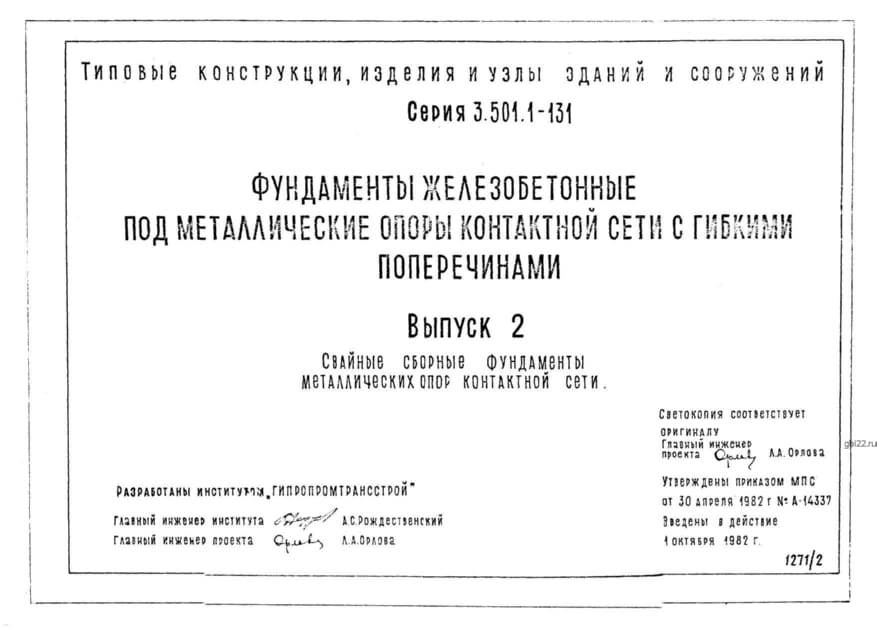 | Название стандарта | Фундаменты железобетонные под металлические опоры контактной сети с гибкими поперечинами. |