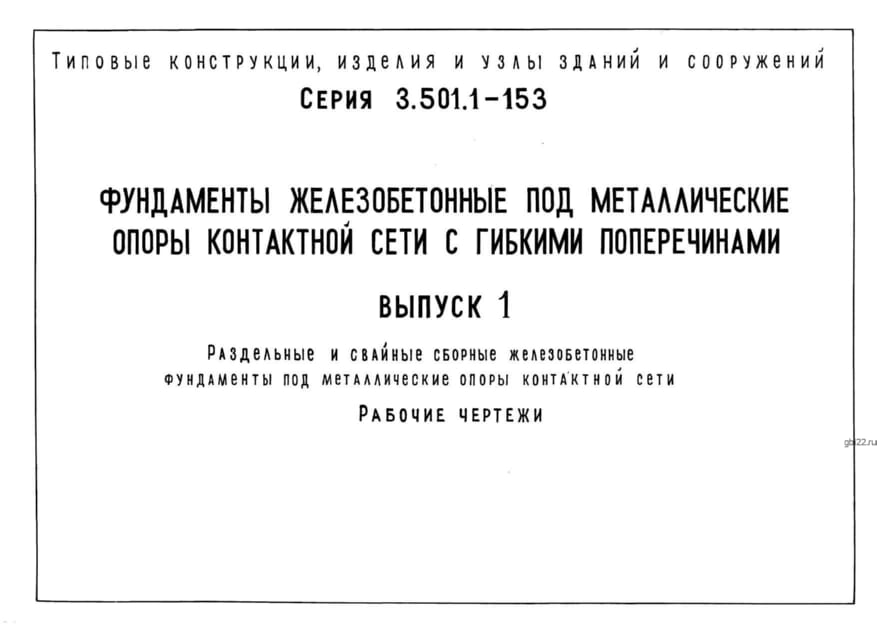 | Название стандарта | Фундаменты железобетонные под металлические опоры контактной сети с гибкими поперечинами. |