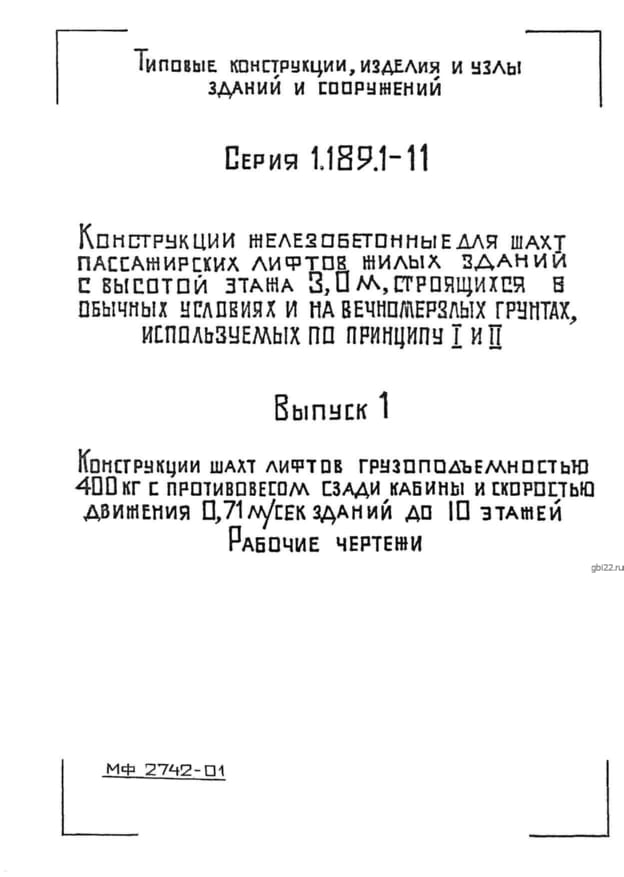 Конструкции железобетонные для шахт пассажирских лифтов жилых зданий с высотой этажа 3,0 м, строящихся в обычных условиях и на вечномерзлых грунтах, используемых по принципу I и II.