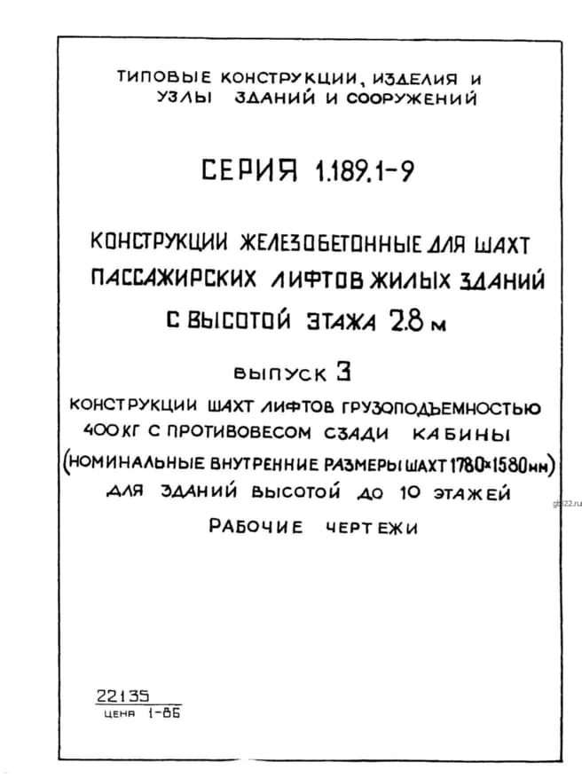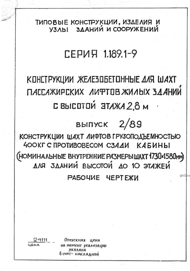 | Название стандарта | Конструкции железобетонные для шахт пассажирских лифтов жилых зданий с высотой этажа 2,8 м. |