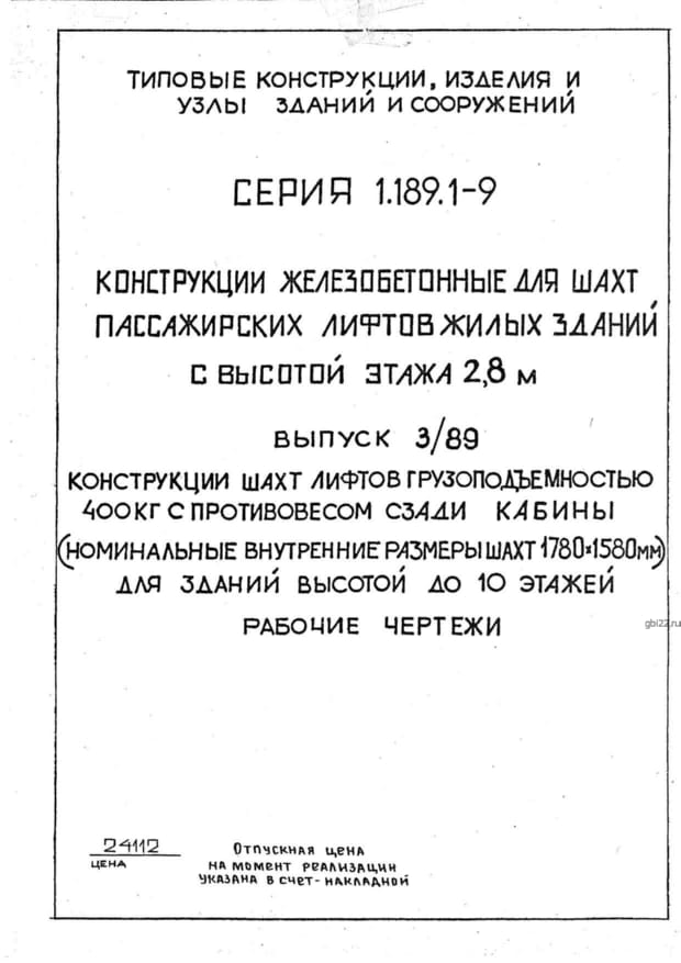 | Название стандарта | Конструкции железобетонные для шахт пассажирских лифтов жилых зданий с высотой этажа 2,8 м. |