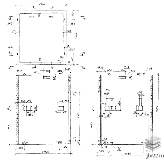 Армирование выполняется сетками из проволоки BpI и стержней AI. Строповочные петли изготавливаются из стали ВСт3пс2/ВСт3сп2 (ГОСТ 380-71).