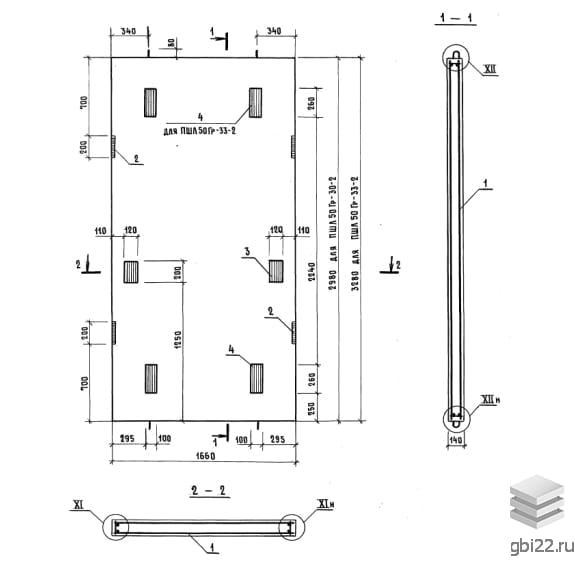 Панели шахт лифтов ПШЛ 50Гр-33-2 размеры: длина, мм.: 1660, ширина, мм.: 140, высота, мм.: 3280, вес, кг.: 1910, марка бетона: М200. Изделия относятся к категории Шахты лифтов железобетонные-Панели шахт лифтов и изготавливаются по технической документации согласно серия 1.089.1-2